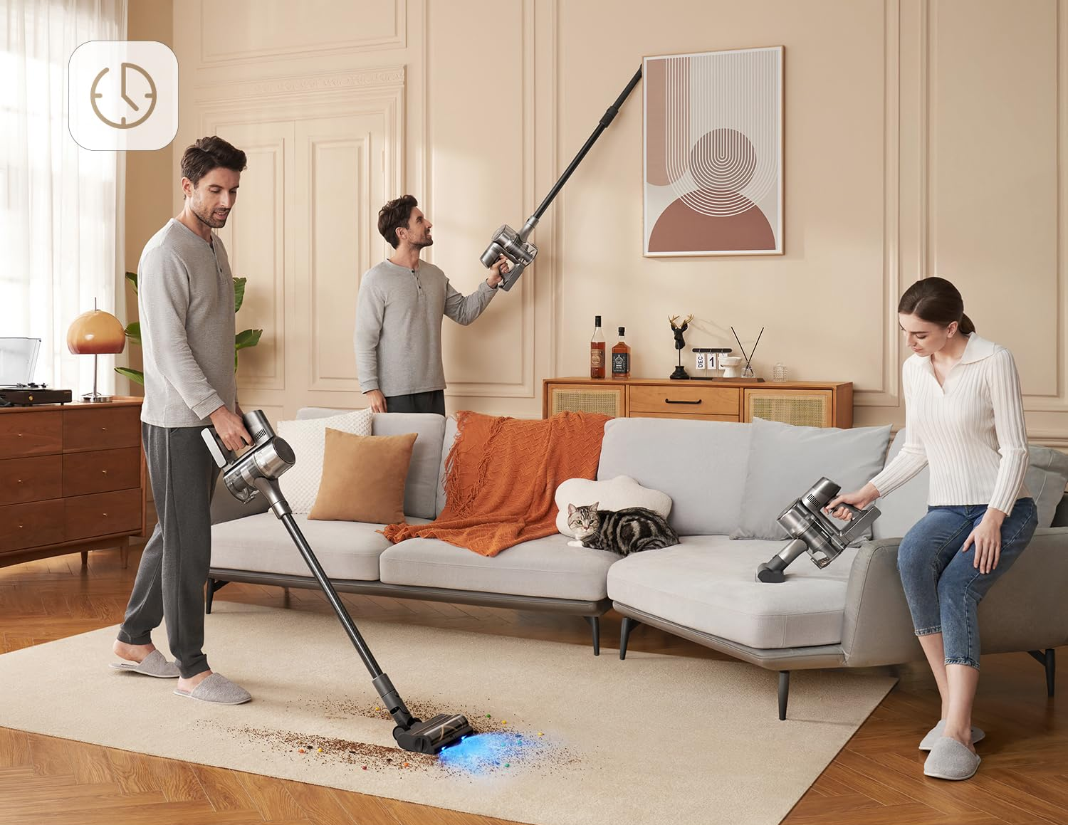 Akku Staubsauger 30000Pa, 55 Min Laufzeit, Kabellos mit Touchscreen & Anti-Tangle-Bürste, Stiel- & Handstaubsauger für Tierhaare, Teppich, Böden
