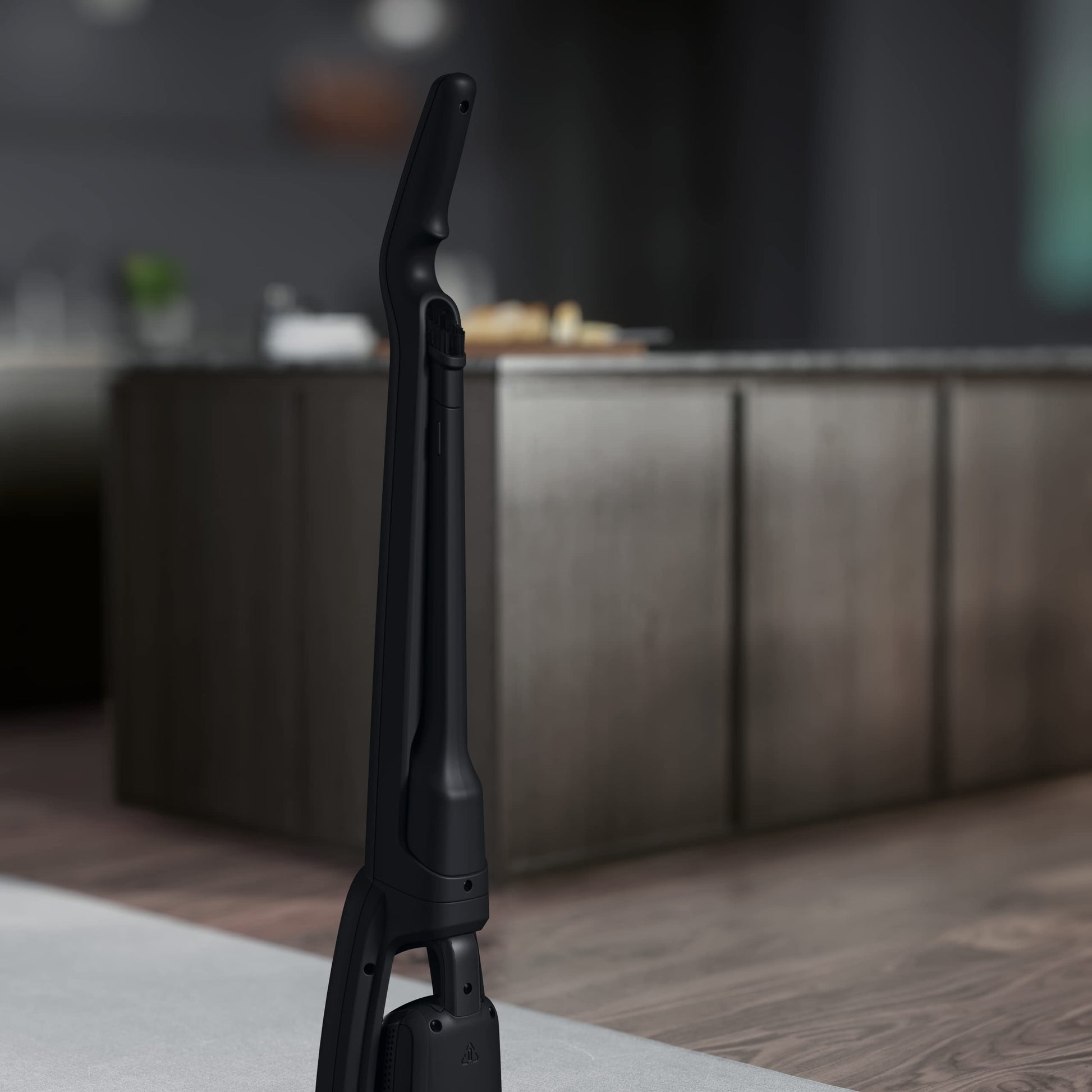 - 2in1 Design: Fügt sich in jedes Wohnambiente ein – ergonomischer Schwerpunkt im unteren Bereich – schlanke Bauform, kommt auch unter flache Möbel – integrierter Handstaubsauger für noch mehr Flexibilität im ganzen Haus