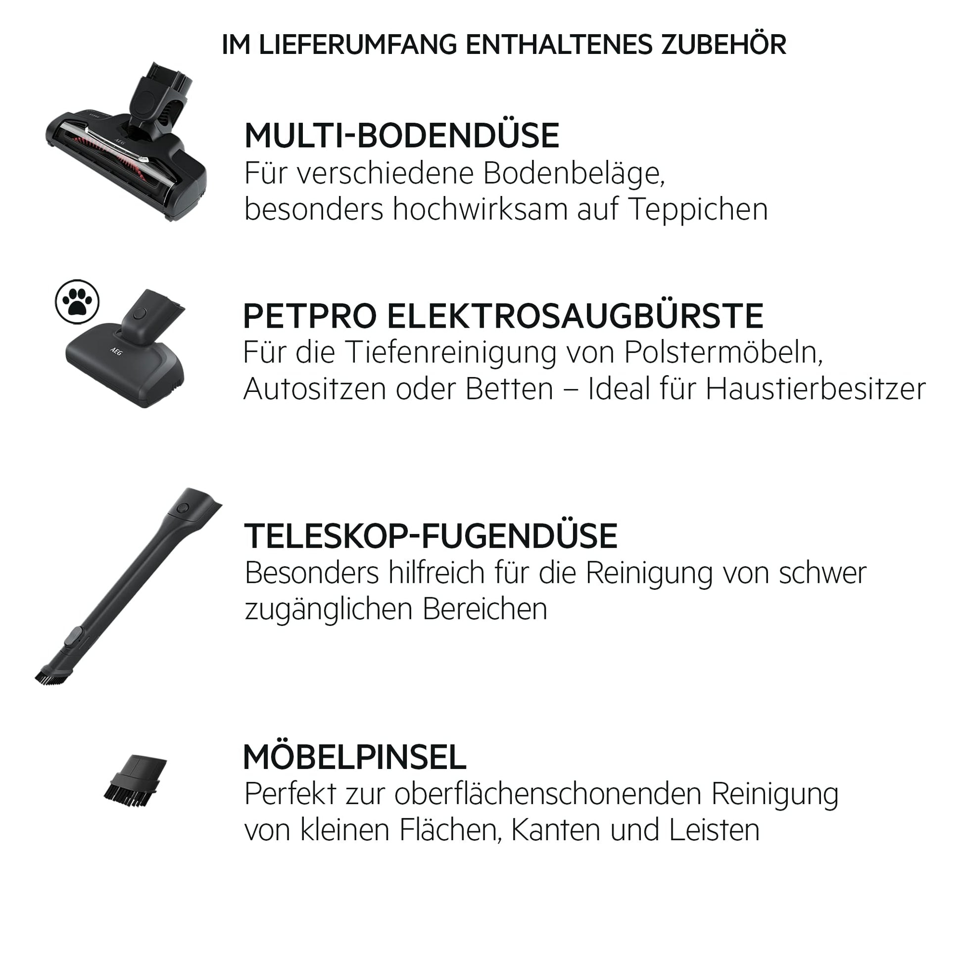 - Lieferumfang: 1x QX6, 1x integrierte Fugendüse und Möbelpinsel, 1x PetPro-Elektrosaugbürste, 1x Ladestation // Zubehör-Empfehlung: Erweiterungsset AKIT21, Power-Softrolle AZE137, Filter-Set ASKW1