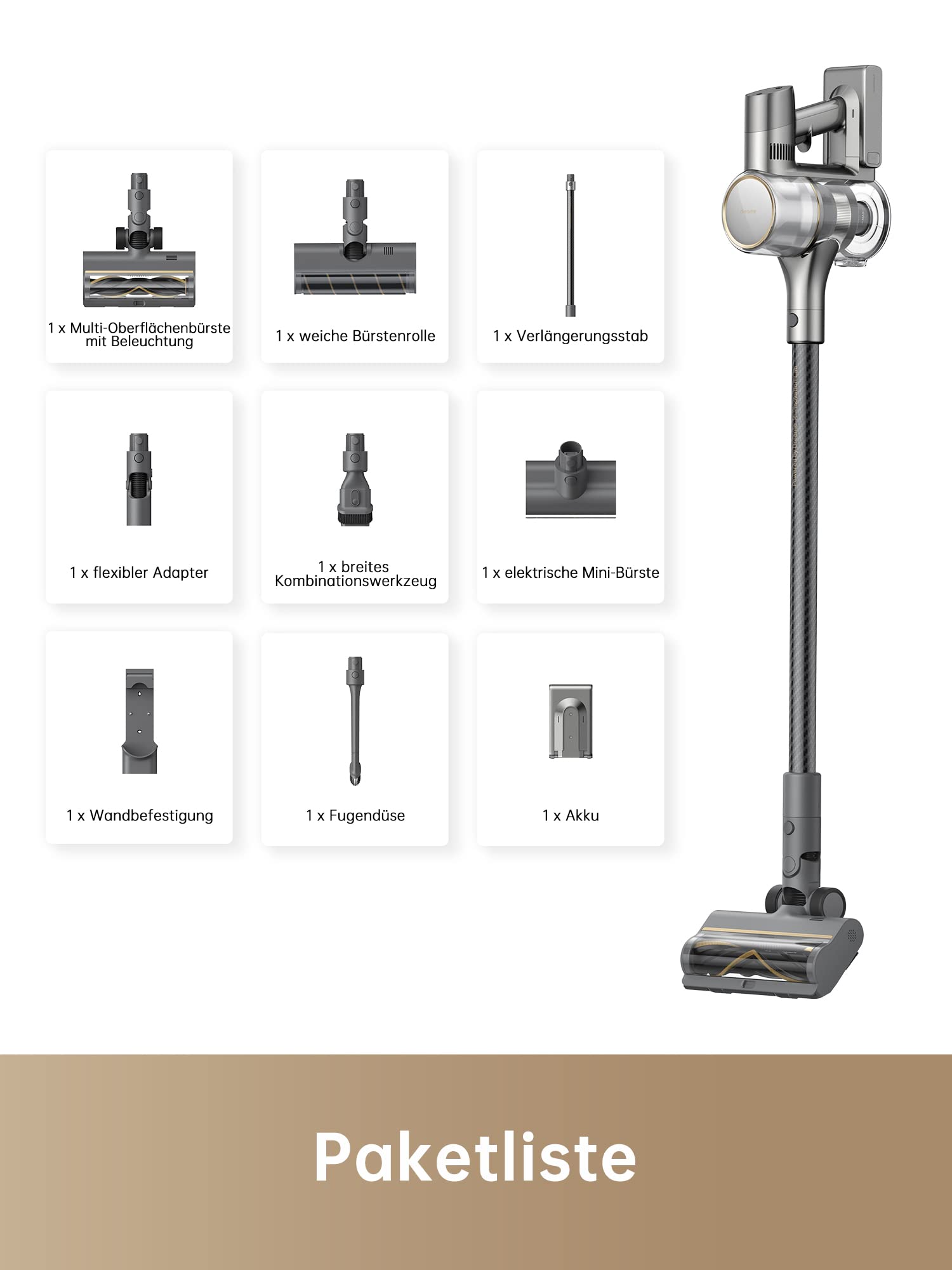 - Kluge Funktionen: Der R20 mit seiner kraftvollen 190AW-Saugleistung, intelligenter Stauberkennung und den austauschbaren Bürstenköpfen und Aufsätzen bieten effektive Reinigung für jede Oberfläche